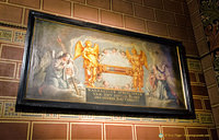 The large wall painting behind the altar shows many scenes