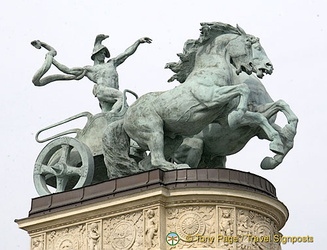 Equestrian statue of the seven Magyar tribes encircle the column