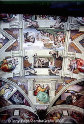 Ceiling main panels chart the Creation of the World and Fall of Man