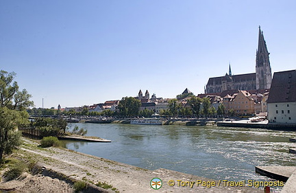 View of the Regensburg Old Town from across the Danube River