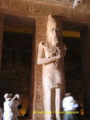 On two days of the year the sun's rays reach these once gold-covered statues. [Great Temple of Abu Simbel - Egypt]