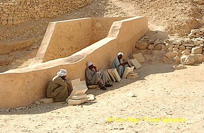 Tomb reconstruction workers sheltering from the heat [Valley of the Kings - Egypt]